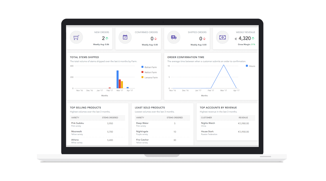We're 100% focused on making floral production and sales management simpler for growers. Our platform helps solve your most pressing challenges.